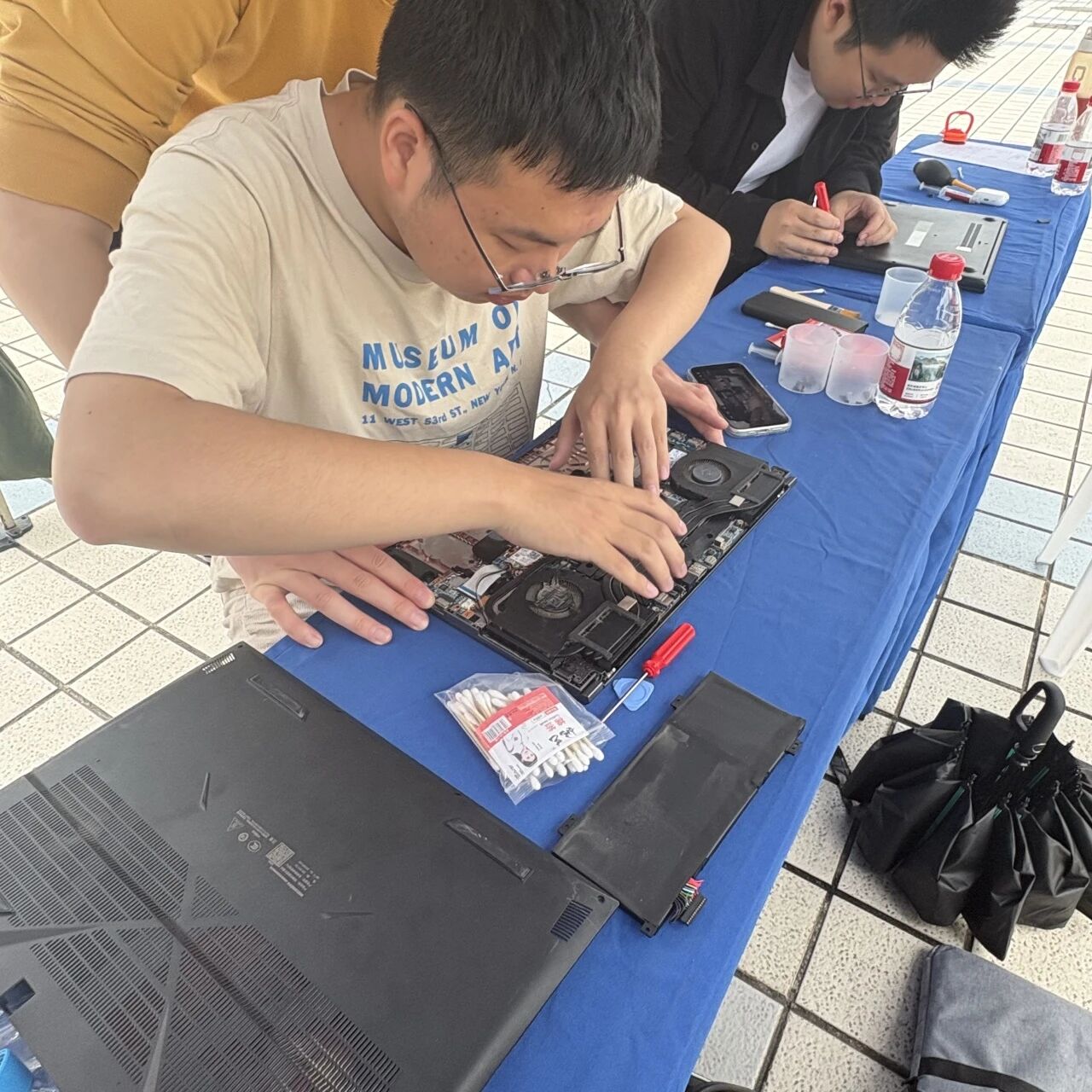 活动现场秩序井然,志愿者们提前到场,分工明确、各司其职。引导组认真登记师生信息及设备问题,咨询组耐心解答电脑使用疑惑,维修组以扎实的专业技能和规范操作,贴心开展维修服务。全程规范签署服务知情同意书,切实保障师生设备与数据安全。