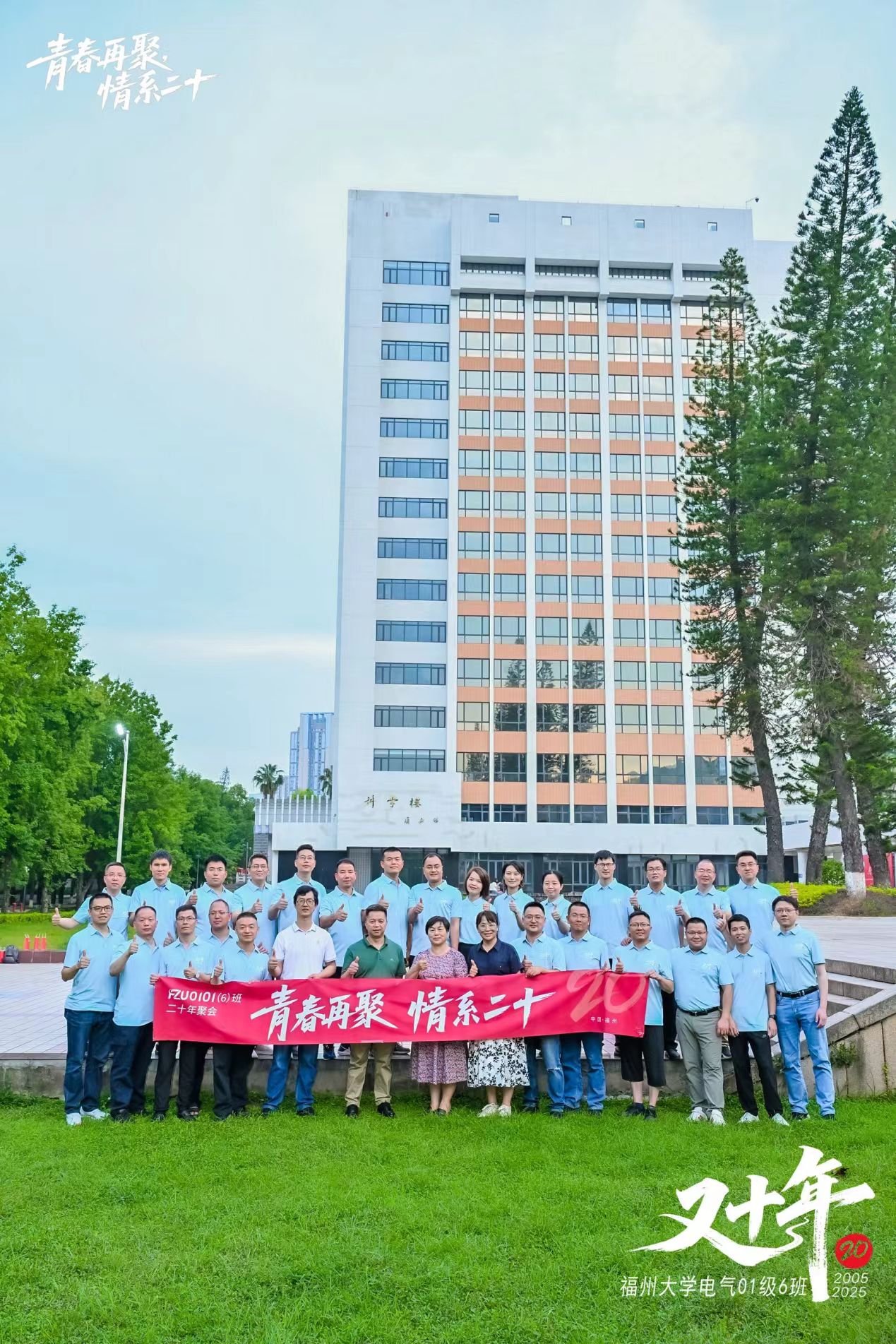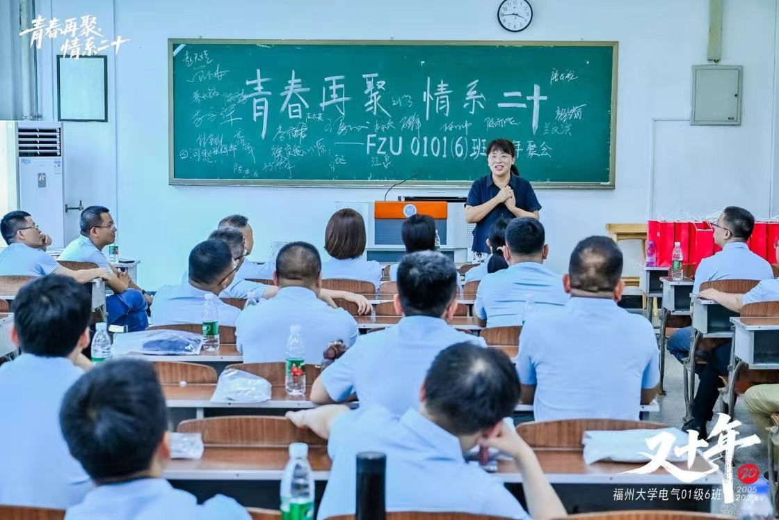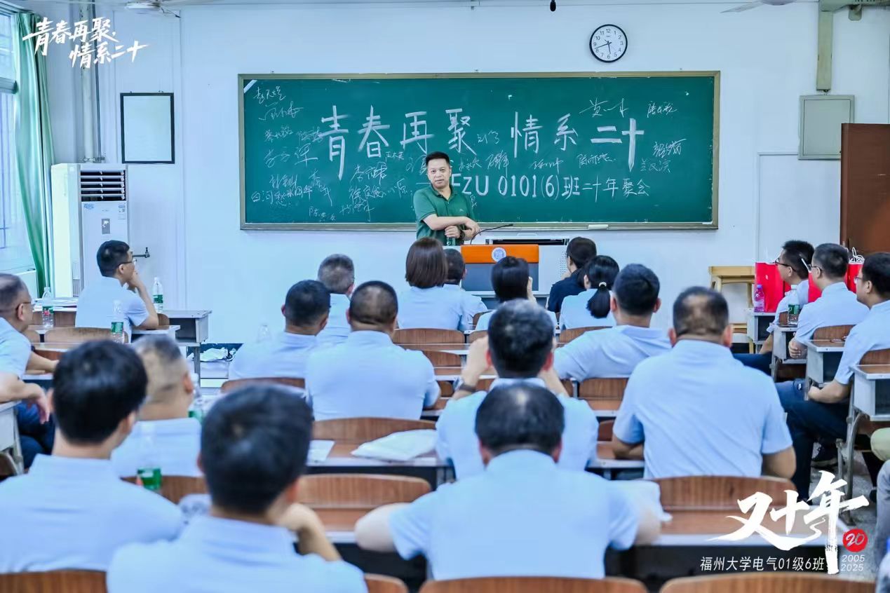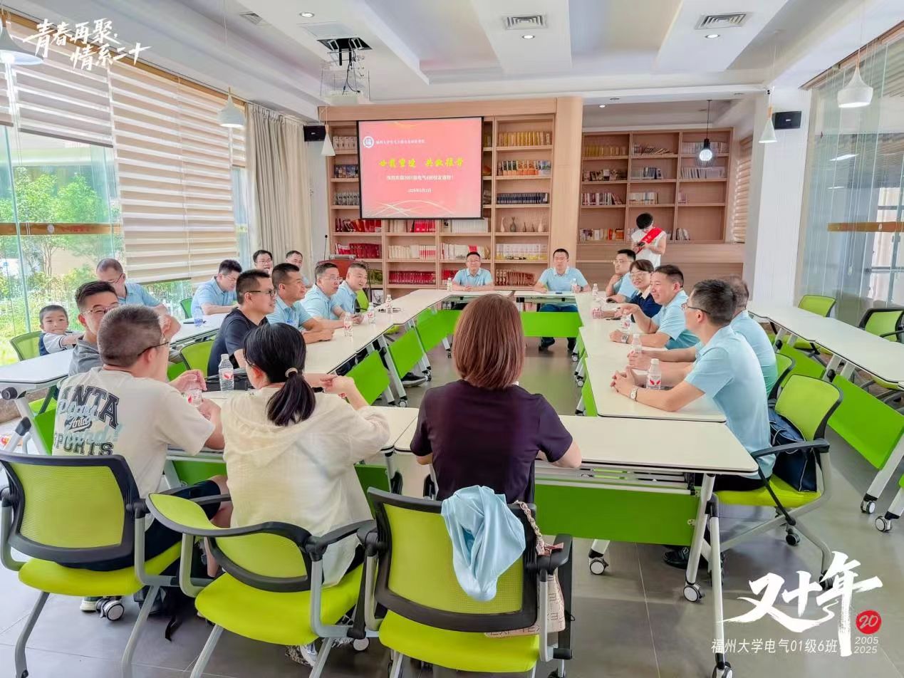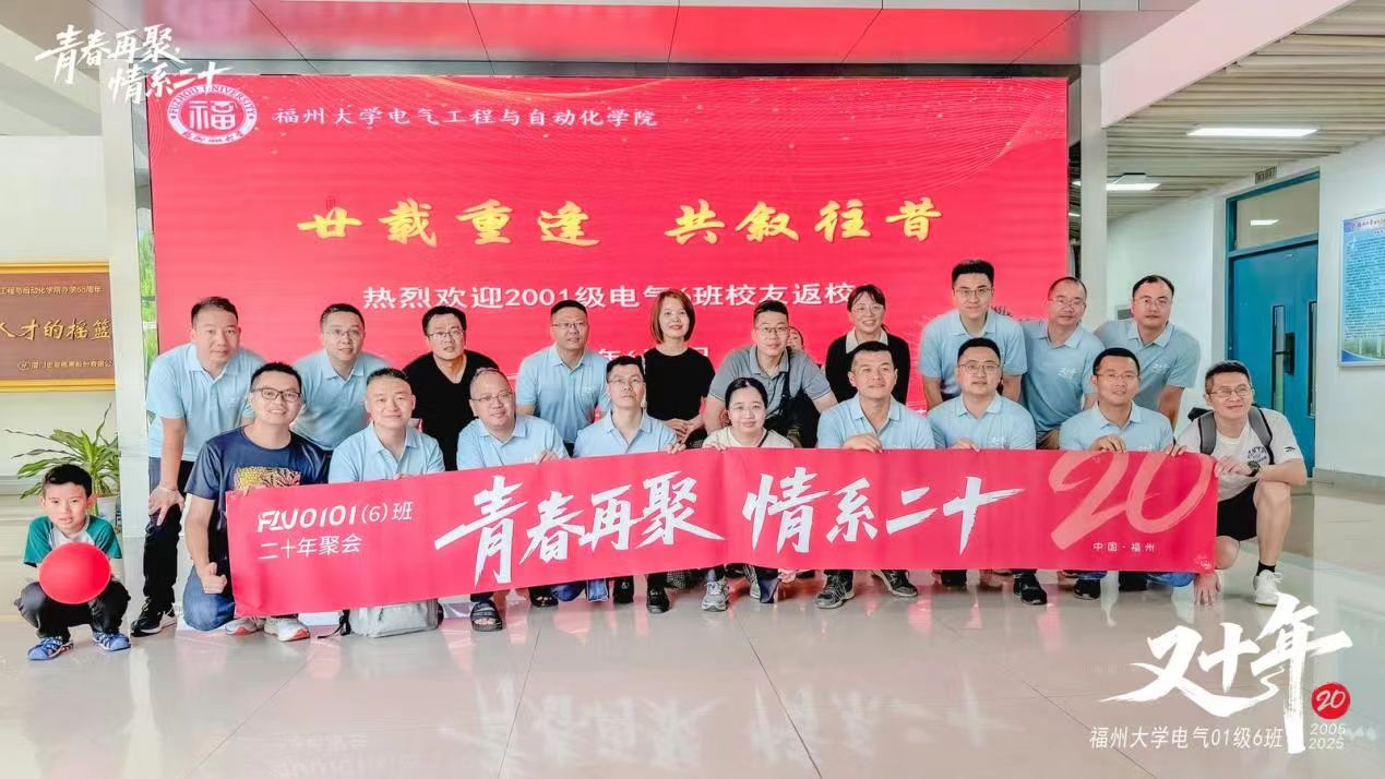 山依旧,水依旧,人未老,情未了。2025年6月1日至2日,福州大学01级电气6班的校友们重返母校,回味往昔青葱岁月,畅叙师生深情。2001级辅导员、福州大学科技开发部主任黄国辉,学院党委书记潘志辉、学院党委副书记杜领军、学院校友办许海燕老师、电气学院林珍老师和杨明发老师受邀参加了活动。