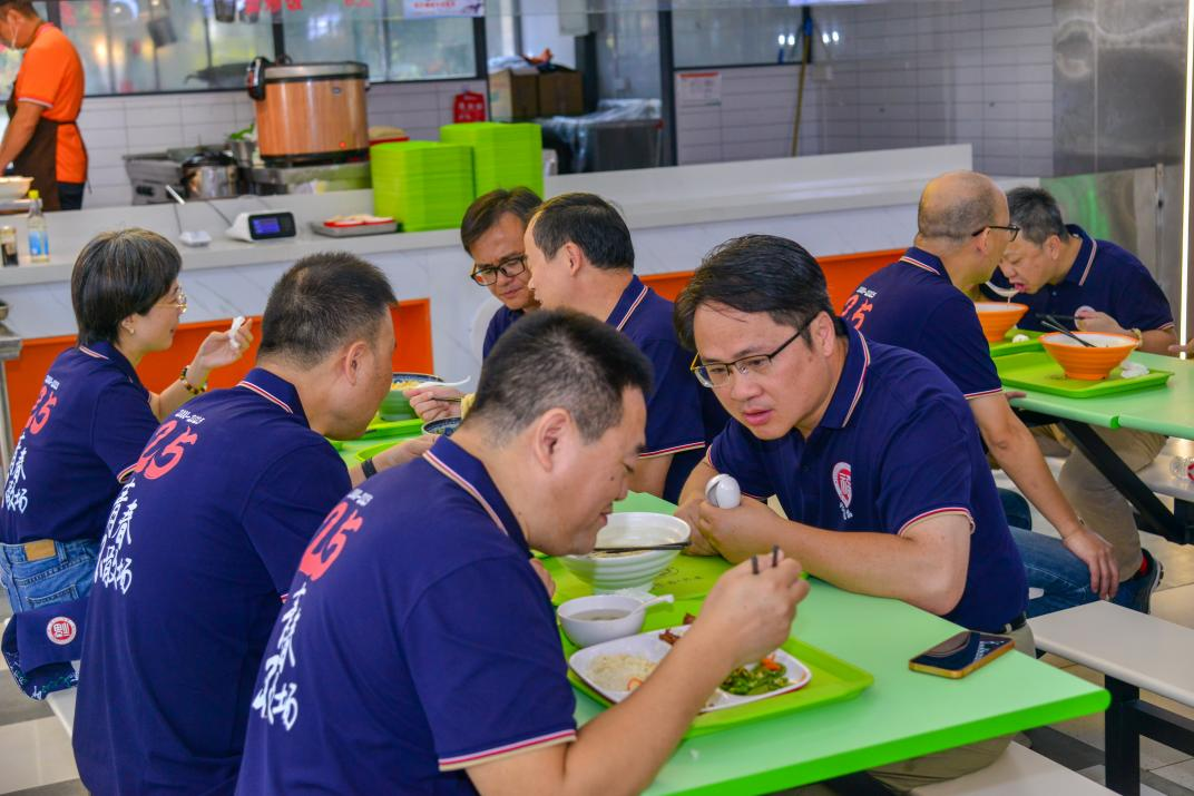 近午时分,秋阳和煦,校友们搭乘校园电瓶车,开启了一段充满温情与回忆的校园巡礼。车辆缓缓穿行于绿树成荫的道路,掠过宏伟现代的图书馆、青春飞扬的运动场与设施完善的教学区。校友们时而为校园新貌赞叹不已,时而因熟悉景致唤醒青春记忆,欢声笑语中尽显重逢的喜悦。随后,众人信步至紫荆园食堂,在温馨热闹的氛围中围坐共进午餐,仿佛重回学生时代。席间,大家畅谈各自二十五载的人生历程:有人在技术领域深耕不辍,有人在管理岗位大展宏图,还有人创业路上披荆斩棘。不同的轨迹,相同的是对母校的眷恋和对青春的怀念。