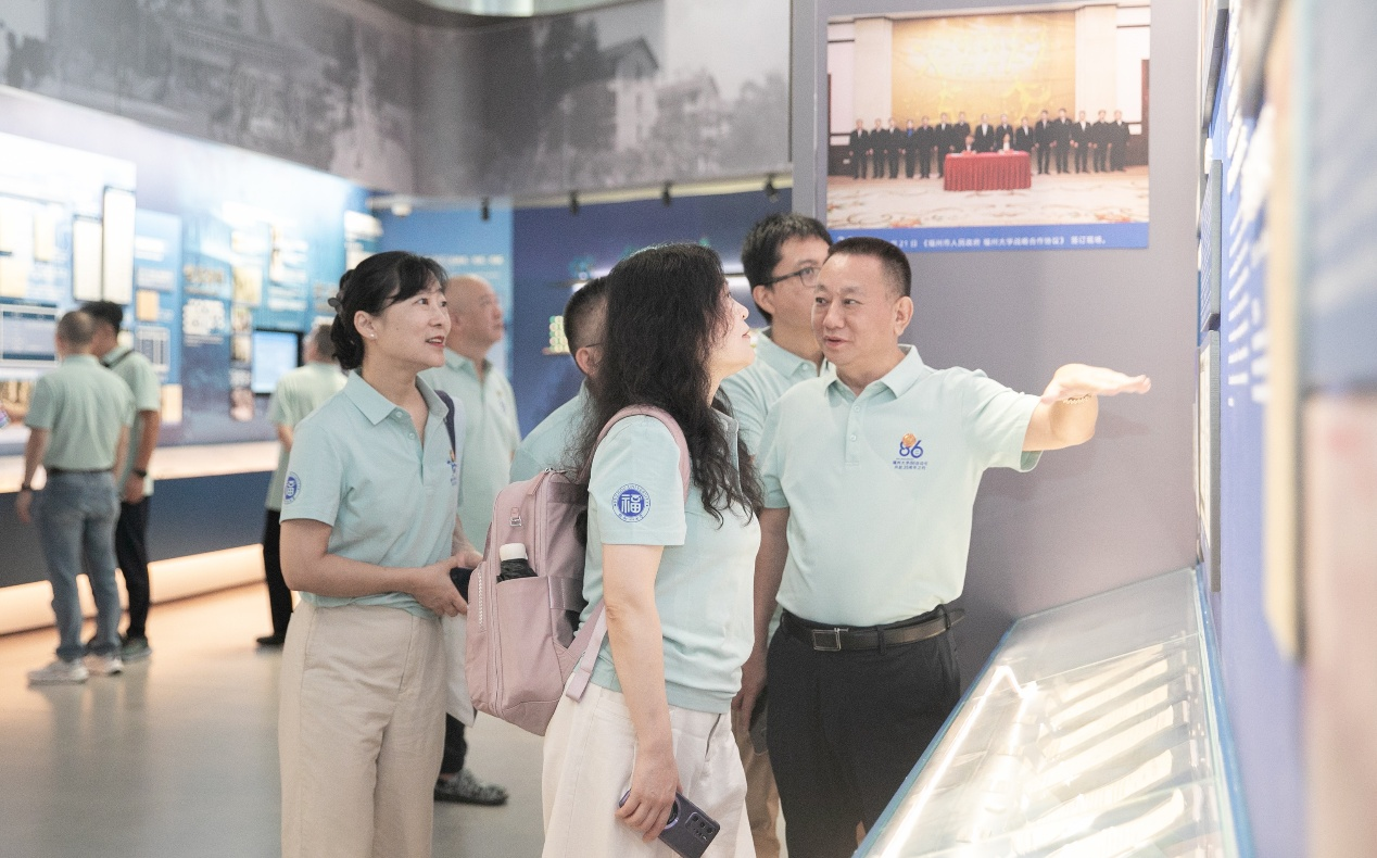 随后,校友们来到了校史馆,由讲解员详细介绍了福州大学自建校至今的发展历程和取得的成就。校史馆让校友们回忆起当年在校园中的点滴,特别是看到电气学院的展示内容时,校友们驻足细观,在校的人生经历与学院的发展成果在此交汇,种种感触涌上心头。