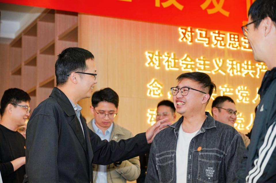 午后斜晖,温煦如酒,校友们如约而至,齐聚于电气学院门前。熟悉的楼宇虽历经时光洗礼,却更显庄重与现代。在志愿者的引导下,众人步入精心布置的青马研读社。窗明几净,桌椅齐整,瞬间唤醒了深藏心底的求学记忆。师生们亲切相迎,握手、拥抱、笑语不断,虽阔别十年,师生之谊仍醇厚如初。