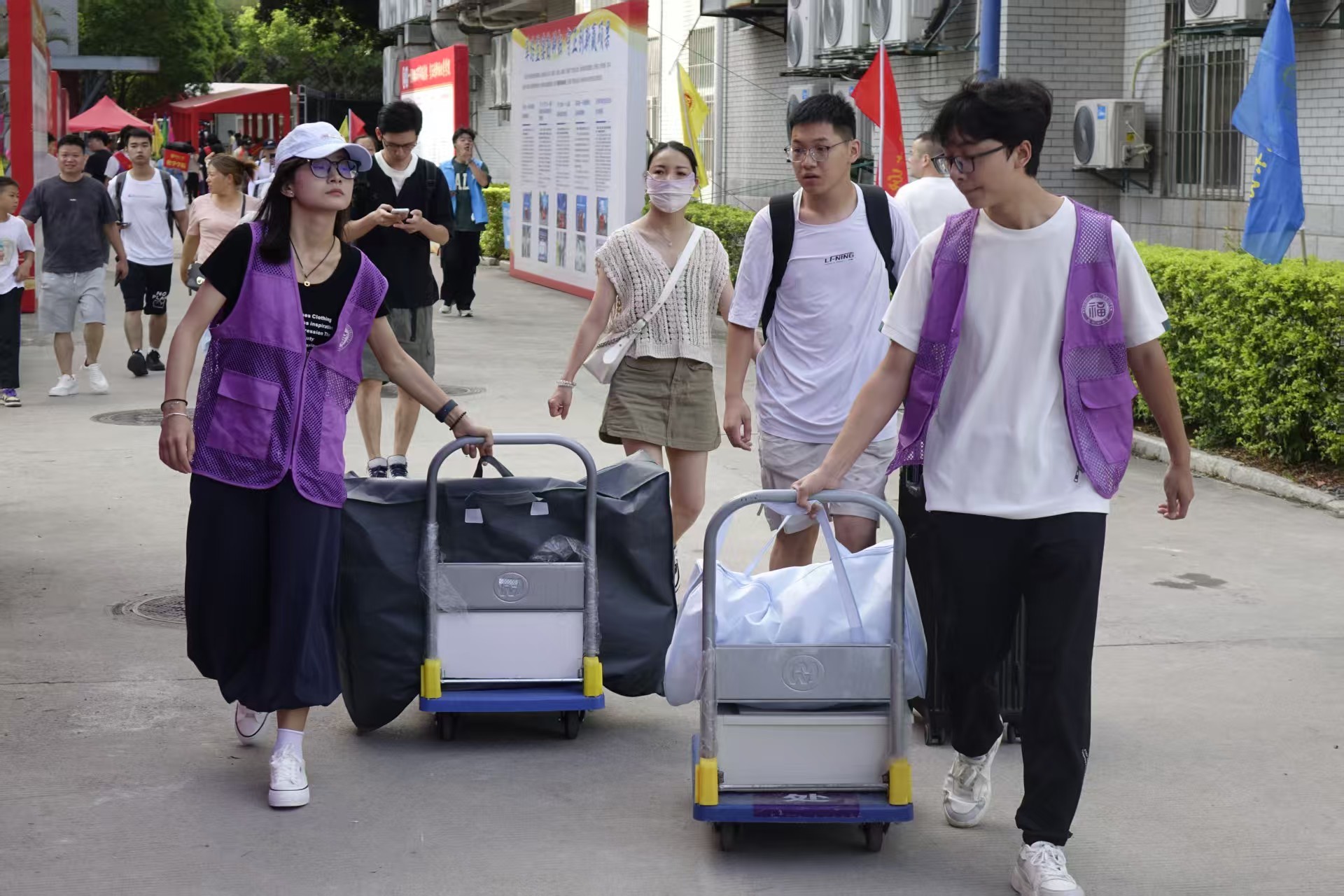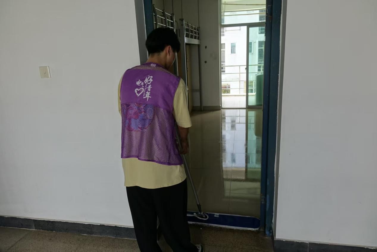 迎新筹备中,一抹抹“电气紫”成为校园里最动人的风景。电气学院的志愿者们提前集结,化身“迎新摆渡人”:细致清扫新生宿舍,拂去尘埃、备好物资,让“新家”满含暖意;精准规划场地布局,拉线定位、摆放展板,让指引更为清晰。他们以青春热忱筑牢服务防线,用实际行动传递电院温情,静候新生的到来。