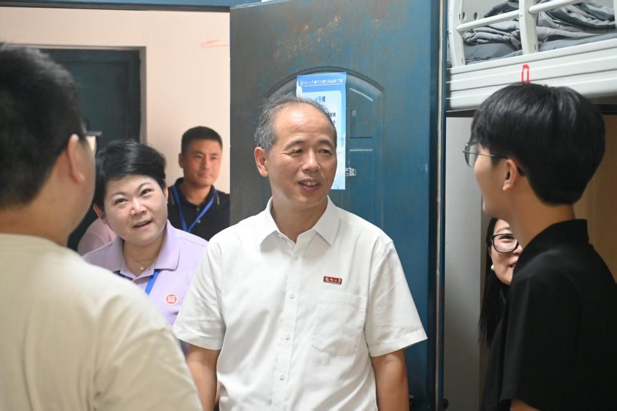 电气学院党委书记潘志辉、院长邵振国、副书记杜领军率新生辅导员,深入迎新现场与新生宿舍,看望一线志愿者,慰问远道而来的莘莘学子,以温暖之举点亮入学“第一课”,以关怀之情筑牢育人“初心桥”。