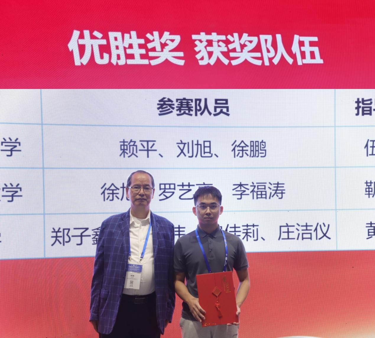 在颁奖环节,中国电源学会磁技术专委会主任委员太原理工大学杨玉岗教授和奥海科技郭修根副总裁给一等奖获奖队伍颁奖。