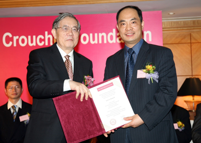 手中接过裘槎优秀科研奖获奖证书