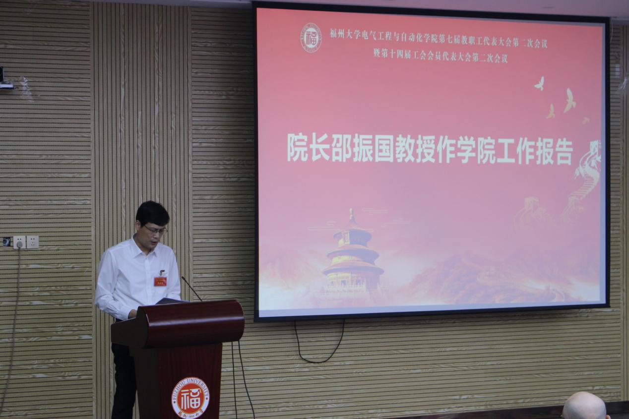 会议听取和审议院长邵振国教授所作的学院工作报告。2024年,电气工程与自动化学院在校党委领导下,围绕立德树人根本任务探索发展。党建方面强化引领,成果丰硕;教学上教材教改齐抓,成绩突出;人才学科深度融合,学术影响力提升;科研立项数量创新高,产教融合成效显著;五育并举实现人才培养升级,毕业生就业率达99.29%居全校第一。报告同时指出学院还存在学科融合不足等问题,未来将继续以双一流建设为引领,优化学科布局,引育人才,加强科研与人才培养,推动学院持续稳健发展,作出更优成绩,不断向社会和国家输送高质量人才,服务区域发展。